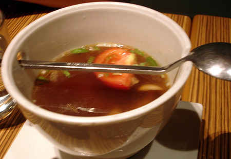 再來是湯 這是蕃茄海鮮湯 真的一整個蕃茄味 很濃