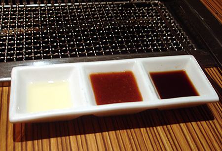 再來是沾醬 左邊的檸檬醬汁 還有中間的味增醬吃來比較對味